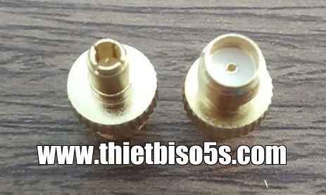 Đầu chuyển đổi Anten TS9 sang SMA (TS9-SMA). Một đầu là TS9 cái có kim, đầu còn lại là SMA đực không kim.
