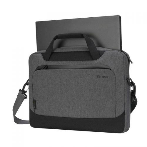 Túi đeo chống sốc Laptop 14″ TARGUS Cypress EcoSmart với kiểu dáng và chi tiết đơn giản, nhấn nhá bằng logo kim loại và khóa kéo chắc chắn, nổi bật mà vẫn rất tinh tế, dễ dàng sử dụng.