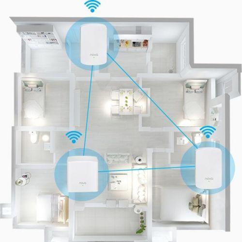 Với công nghệ mạng lưới mới của Tenda, mỗi nút sẽ tự động kết nối với nhau tạo ra một mạng lưới wifi bao phủ toàn ngôi nhà của bạn. Một bộ gồm 3 Pack Nova MW5 có diện tích lên tới 350m2. Với tối đã 6 Pack Nova MW5 có diện tích 600 m2